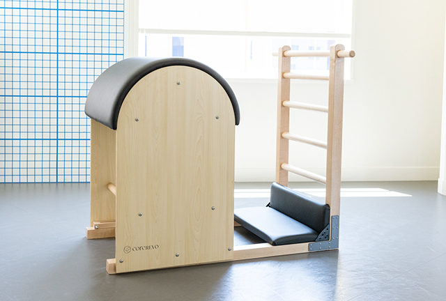 ラダー(はしご)とバレル(樽型)が一体化したマシンで、背骨の動きを意識したストレッチや体幹トレーニングに用いられます。